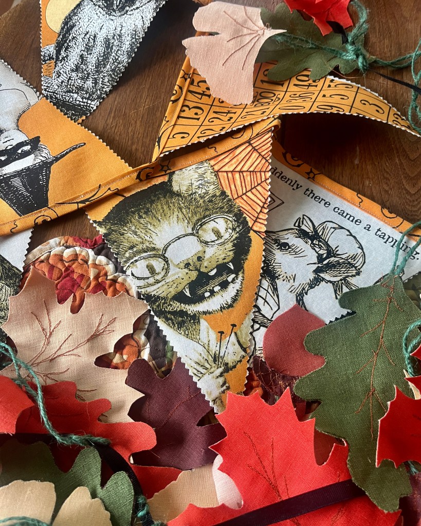 With exactly 90 minutes before the trick or treaters are due to arrive I have finally hung up the banner that goes over the fireplace. Not that any tricksters in costume will be coming IN to the house, it’s just (as mom would say) the principle of the thing. Halloween is today. The banner should be up.