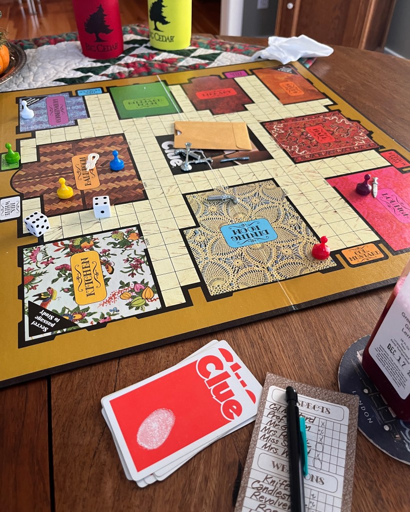 It will likely make you want to get out the game of Clue and have round or two. Again, it’s a fun diversion for a quiet holiday for one or two. Most of the Thanksgiving crowd we had over last month, came down with something after that holiday so we are staying in our respective homes for the 25th. If you think you can’t play Clue with just 2 – look up how to do it on the internet. They have answers for everything.