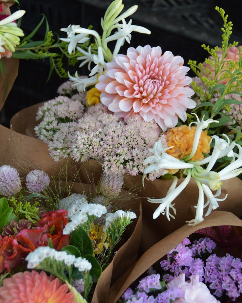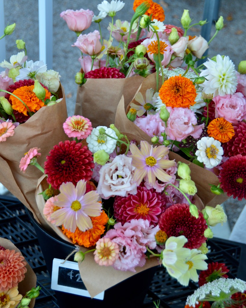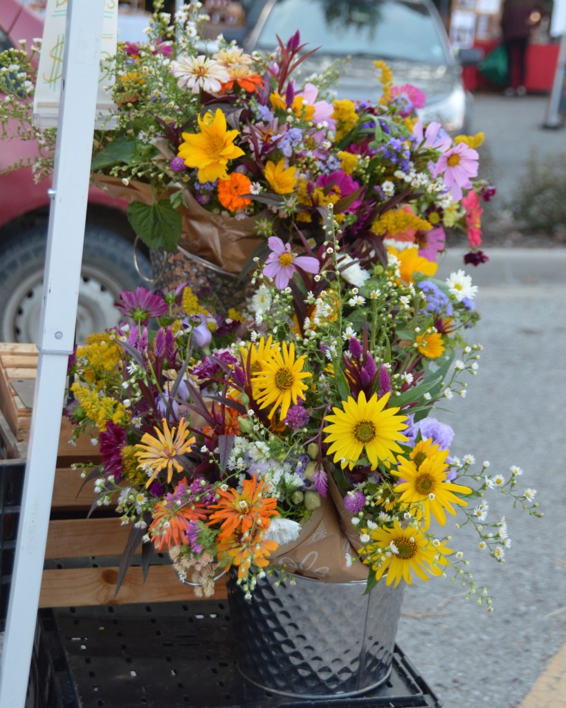 As dad used to say when we were kids, and off on some adventure in the world… I have been “off galavanting” for a few weekends and have thus missed my usual trips to the farmers market. This is why you have received no photos of my purchases, which is really a shame at this time of year when the bounty is plenty and colorful. Let me try to slip these colorful shots in as a substitute.