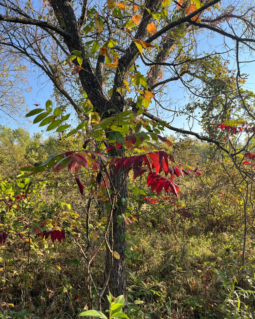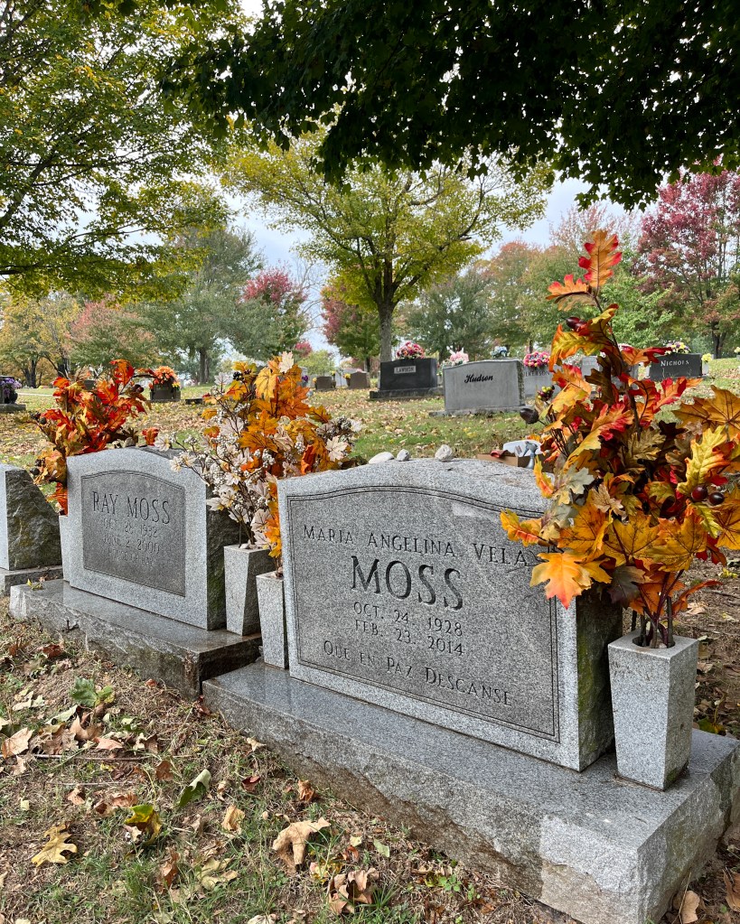Chris and I also motored down to southern Missouri/northern Arkansas for the annual sprucing up of Angie and Ray’s spots at the Maplewood Cemetery. The leaves were not as stellar as they have occasionally been in the past but that did not stop us from our appointed duties of grass clipping, whisk brooming, scrubbing, and flower changing.