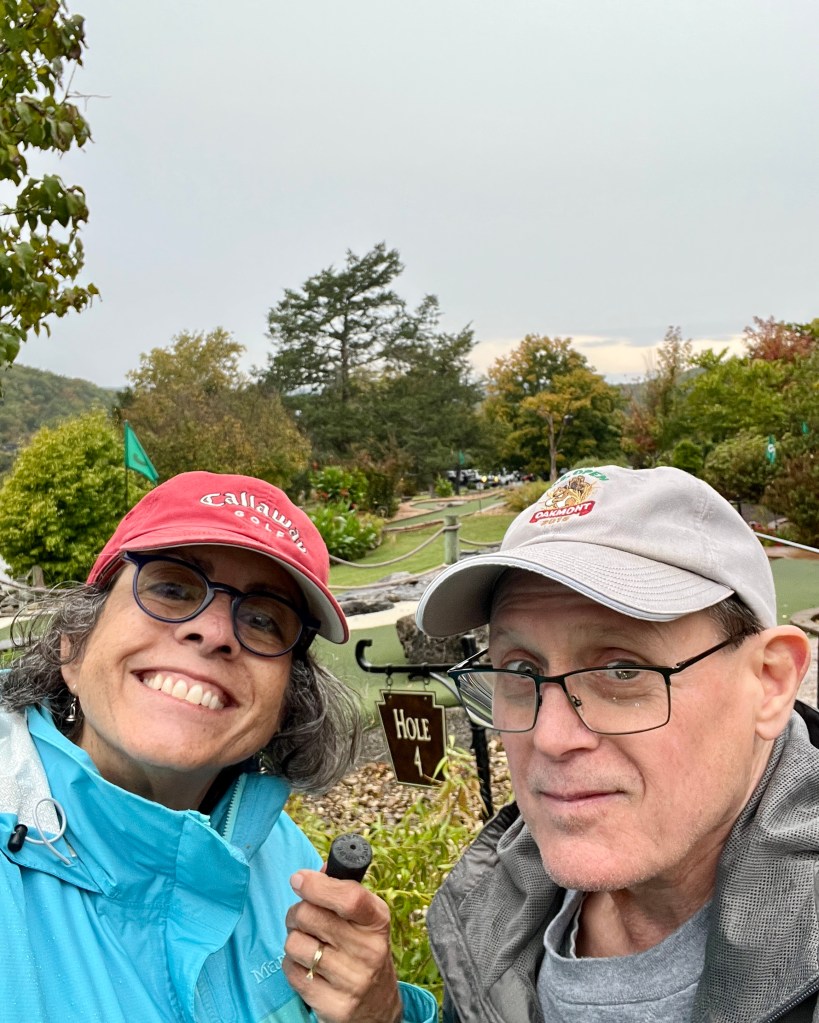 We did not let the drizzle and overcast conditions keep us from the appointed Moss Family Putt-Putt tournament. We blamed our poor showing on the course conditions, but I still beat Chris by 4 strokes and claimed victory. There might have been a fair bit of cursing, but I am chalking that up to the 2 glasses of wine before we played. Highly recommended by the way when you don’t have to drive and the weather is less than stellar.