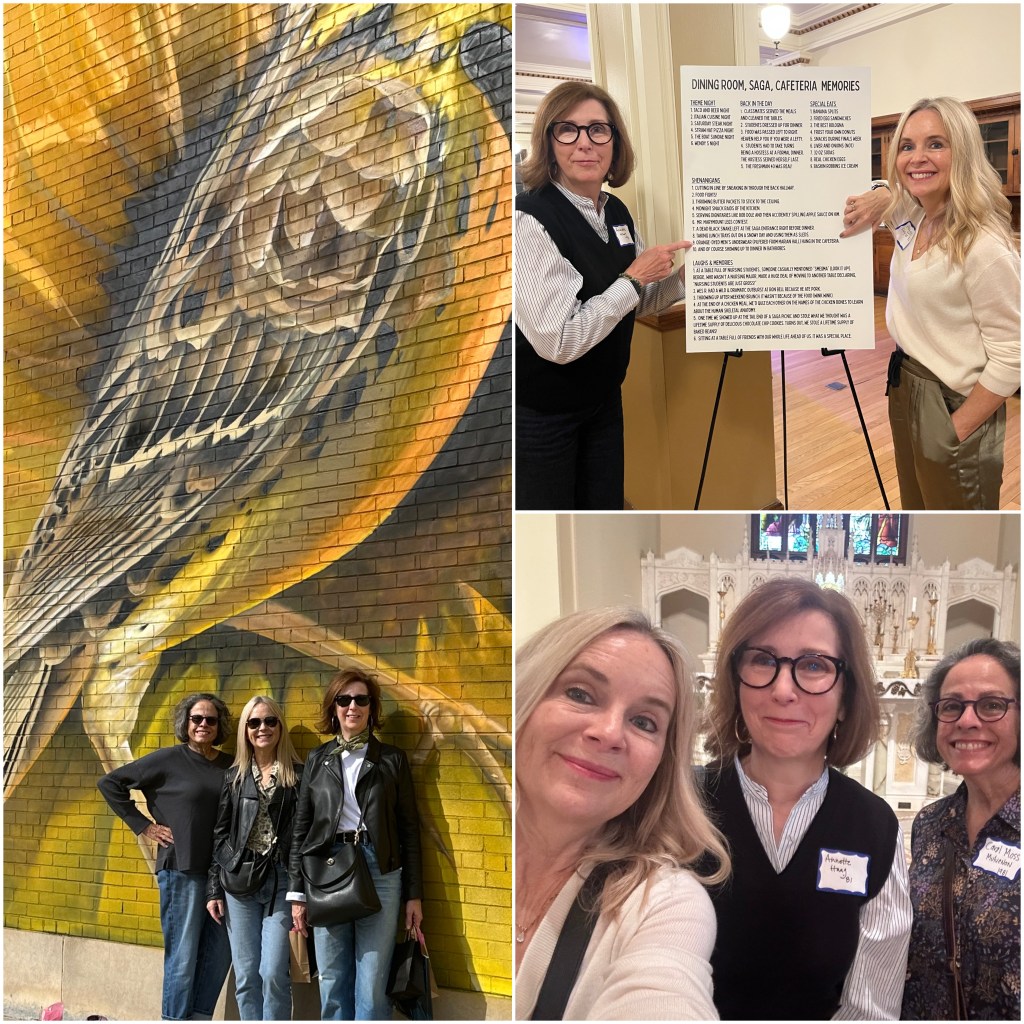 Even though these things are all about the people you hung with in college, going back to the buildings, the town, the dining hall, the cast of characters on the periphery – all of that contributed to the entirety of what was (and remains) at the heart of all that was good about college. I am incredibly grateful to still have these women as friends 47 years after we first met.